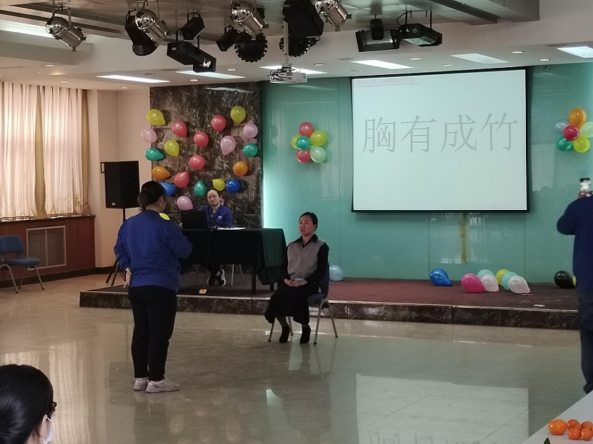 河冶住商的女工們歡聚在住商五樓多媒體大廳里,舉辦溫情茶話會---公司領(lǐng)導(dǎo)認真聽取女工意見,當場安排解決女工提出的各種問題。趣味小游戲---“心有靈犀”、“盲人敲鼓”,參賽者真情演繹,逗得觀眾捧腹大笑,并通過三輪抽獎,抽取了6名幸運女工。